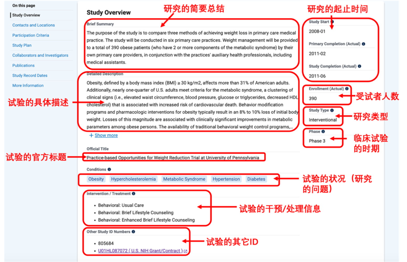 – 在ClinicalTrials.gov 数据库中可以找到的临床研究的信息包括: