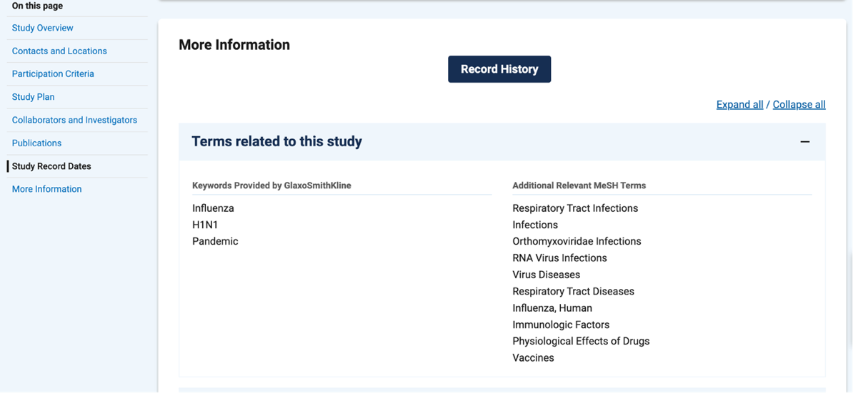 – ClinicalTrials.gov 于2000年启动(其中也包括2000年之前的临床试验的信息),并且每天都在更新。ClinicalTrials.gov并不包含所有研究,研究人员根据研究性质、法律和政策选择是否在网站上提交研究信息。