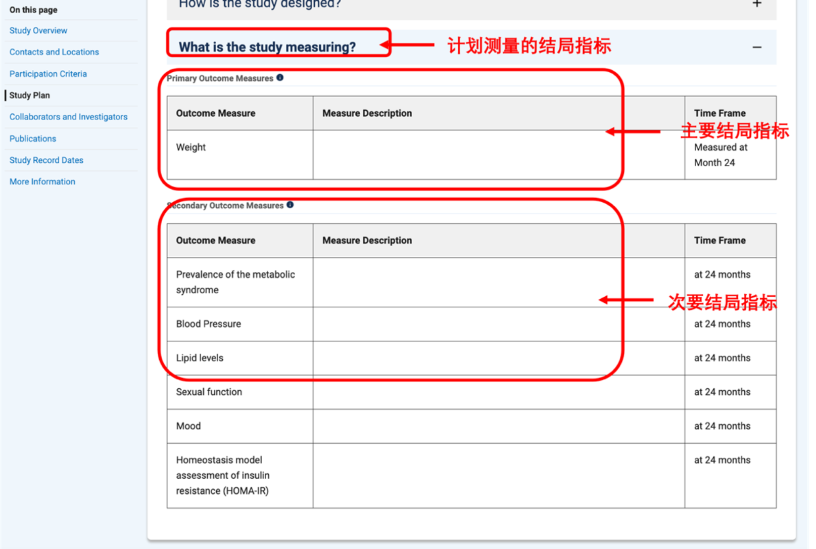 在研究方案中,我们可以了解该试验方案的具体信息,包括试验设计方案和计划测量的结局指标,见图 11图 12。